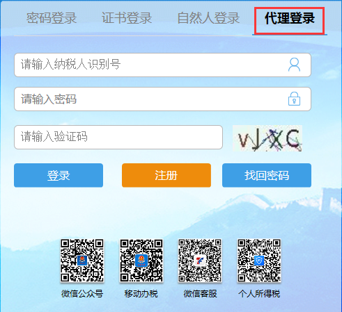 完成以上操作后,代理人选择“代理登录”方式登录电子税务局,如下图所示: