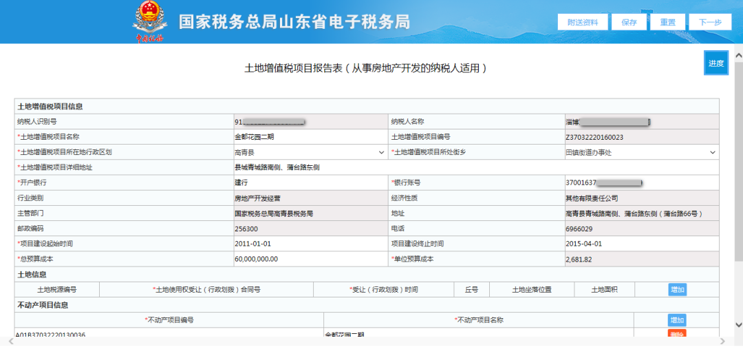 二、增加土地增值税项目报告(从事房地产开发的纳税人适用)功能