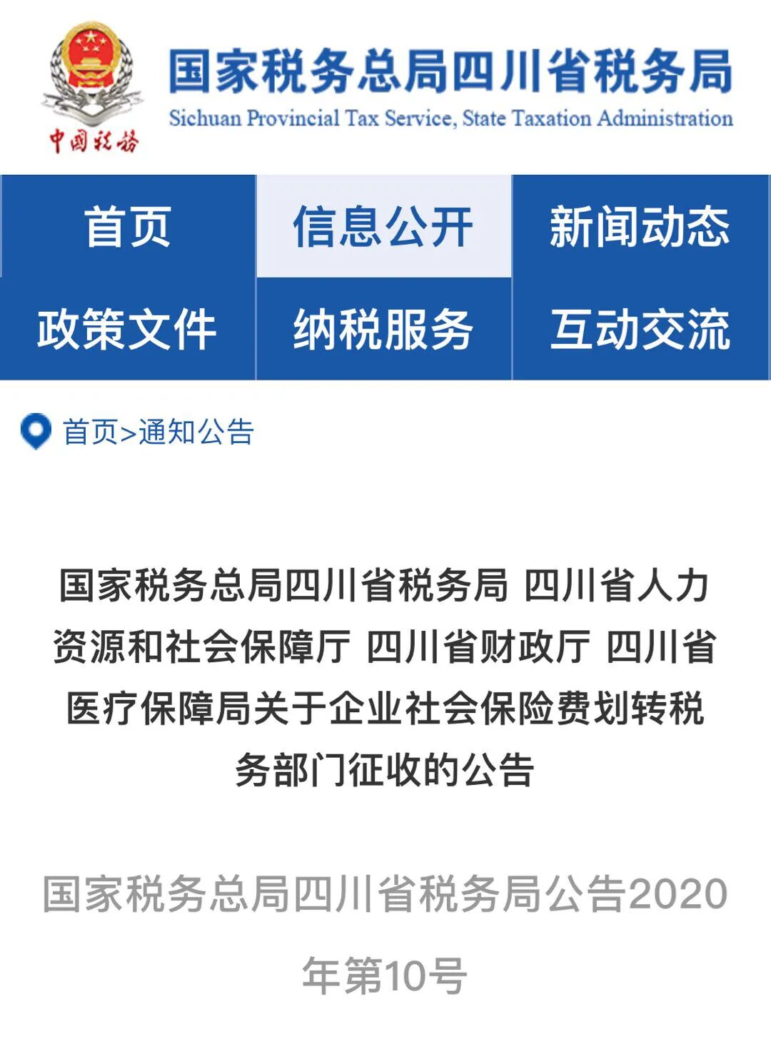关于企业社会保险费交由税务部门征收的公告