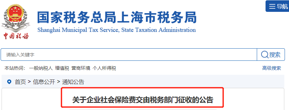 根据国务院和上海市人民政府关于社会保险费征收体制改革部署,自2020年11月1日起,企业职工各项社会保险费交由税务部门统一征收。现将有关事项公告如下: