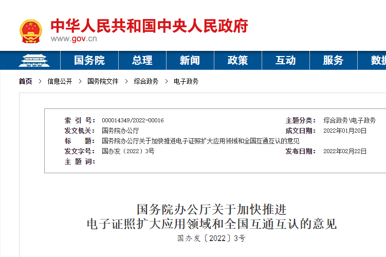 1、依托身份认证国家基础设施、国家人口基础信息库、国家法人单位信息资源库等认证资源,加快完善线上线下一体化统一身份认证体系。2、完善电子证照共享服务体系,推动电子证照扩大应用领域和全国互通互认。3、完善电子印章制发、管理和使用规范,健全全国统一的电子印章服务体系。其实,早在2月22日,国务院办公厅发布《关于加快推进电子证照扩大应用领域和全国互通互认的意见》,明确加快推进电子证照扩大应用领域和全国互通互认,实现更多政务服务事项网上办、掌上办、一次办。